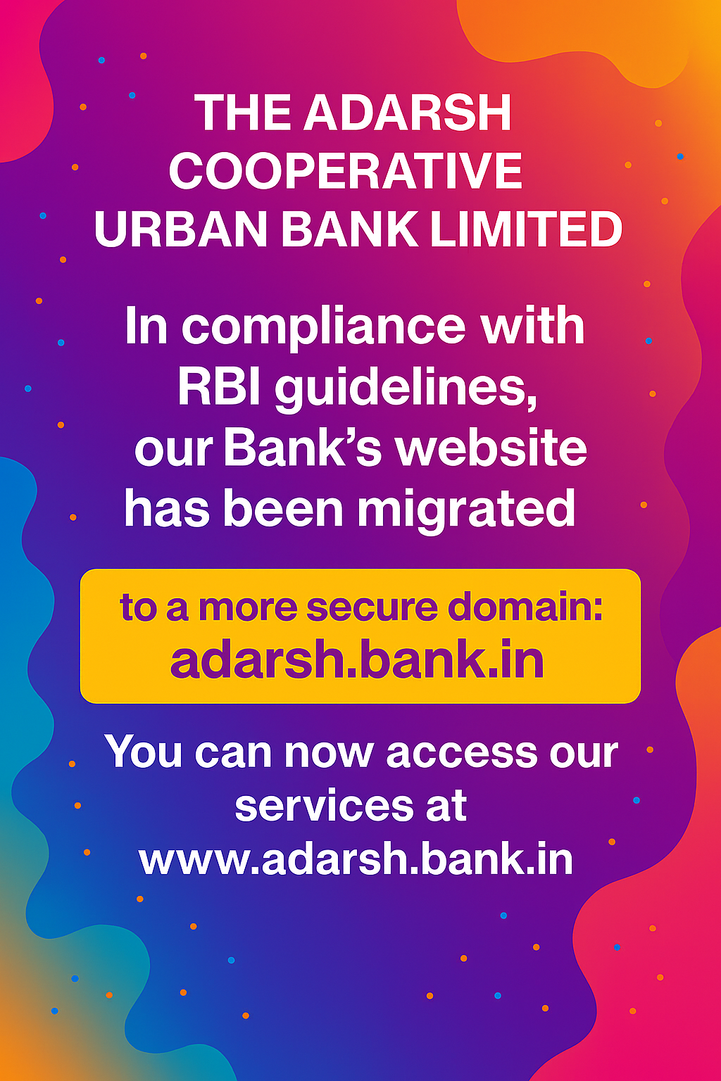 Adarsh Bank has been contributing its share to financial inclusion and inclusive growth of the country by reaching out to members of the lower income groups and underprivileged sections to bring them into the fold of banking services. In order to advance its social responsibility objectives, the Bank has taken measures such as providing SB-Pension scheme with relaxed minimum balance requirements, Cash Depositing Machine, etc.